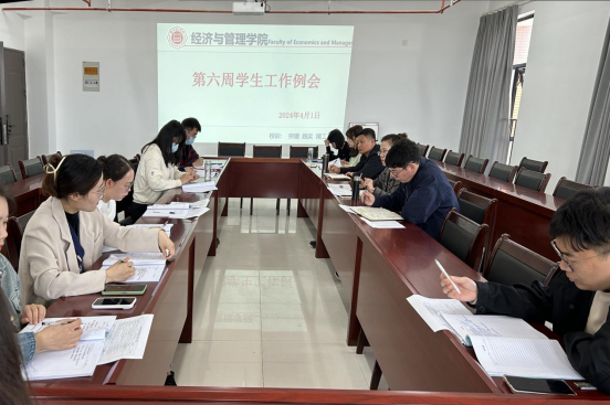 2024年4月1日中午,永利集团304am登录在行政楼725办公室召开本学期第六周学生管理工作例会,副院长秦品德、书记助理叶赵强、院长助理张珊以及全体辅导员参加会议,会议由吴玲院长主持。