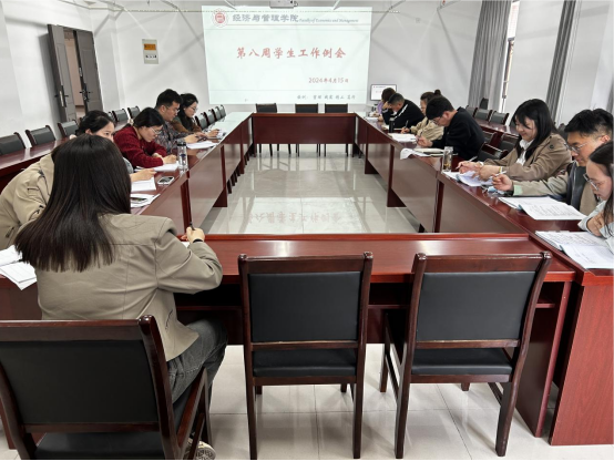 2024年4月15日14:30,永利集团304am登录在行政楼725办公室召开本学期第八周学生管理工作例会,副院长秦品德、书记助理叶赵强、院长助理张珊以及全体辅导员参加会议,会议由吴玲院长主持。
