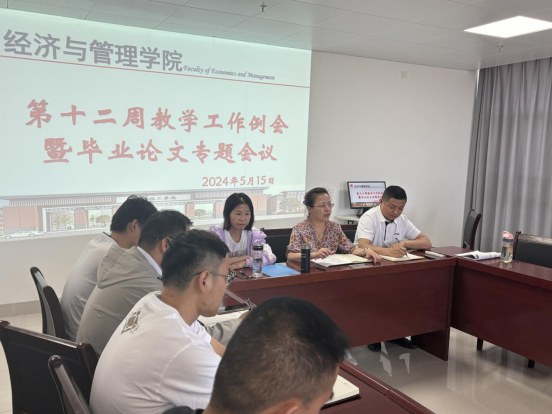 2024年5月15日下午,永利集团304am登录在行政楼725会议室召开永利集团304am登录第十二周工作例会,院长吴玲主持会议,副院长秦品德、院长助理张珊以及全体教师参会。