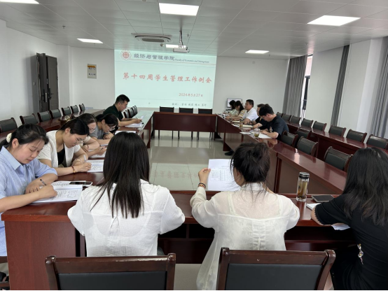 2024年5月27日,永利集团304am登录在行政楼725会议室召开本学期第十四周学生管理工作例会,副院长秦品德、院长助理张珊、书记助理叶赵强以及全体辅导员参加会议,会议由院长吴玲主持。