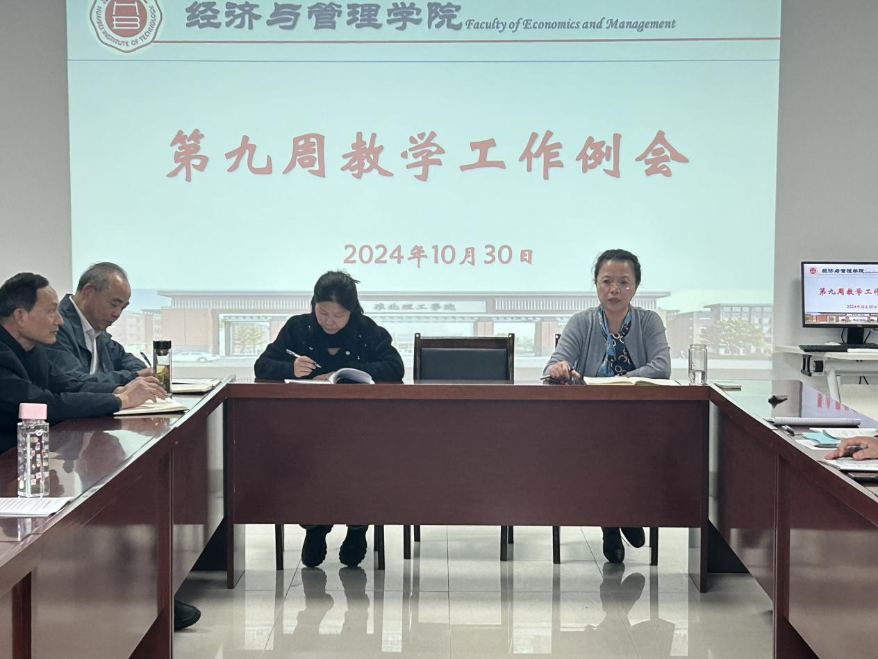 为了使我院教学工作顺利地开展,有效地提高教学工作质量和效率。2024年10月30日下午,永利集团304am登录在行政楼725召开第九周教学工作会议,会议由院长吴玲主持,院长助理张珊、银铃专家及全体专任教师参加此次会议。