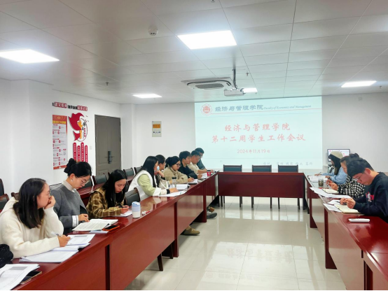 2024年11月19日,永利集团304am登录在行政楼725会议室召开本学期第十二周学生管理工作例会,学院书记助理叶赵强、团总支书记员禹辛及全体辅导员参会,会议由吴玲院长主持。