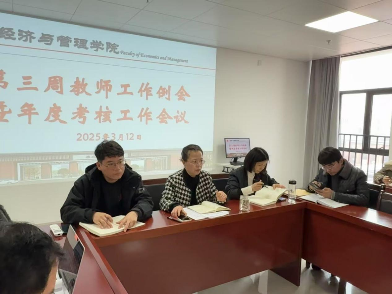 2025年3月12日,永利集团304am登录在行政楼725会议室召开了本学期开学第三周工作例会暨年度考核会议。院长助理张珊、叶赵强、实训室主任李建及全体专任教师参会,会议由院长吴玲主持。