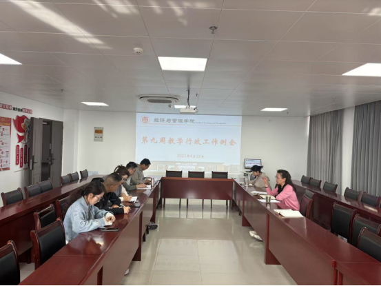 2025年4月23日,永利集团304am登录在行政楼725召开第八周行政工作例会,院长助理张珊、叶赵强,各教研室主任出席会议,会议由院长吴玲主持。