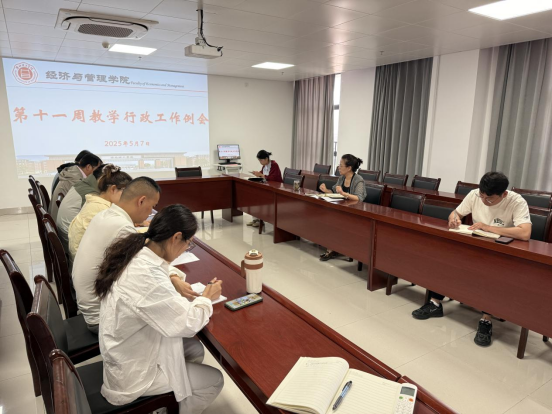 5月7日上午,永利集团304am登录在行政楼725室召开第十一周行政工作例会,院长吴玲主持会议,院长助理张珊、叶赵强,教学秘书李健及各教研室主任参会。