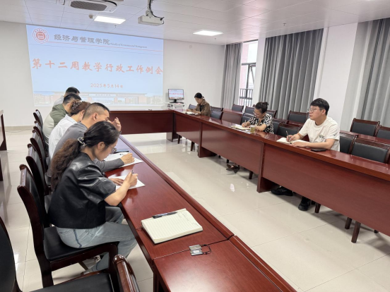 5月14日上午,永利集团304am登录在行政楼725室召开第十二周行政工作例会,院长吴玲主持,院长助理张珊、叶赵强,及各教研室主任参会。