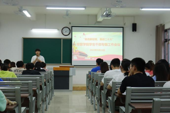 为提高学生干部的工作效率,明确学生干部的工作职责和工作思路,提升各项工作的高效开展;2022年5月24日永利集团304am登录在一教215室召开了“奋进新征程,喜迎二十大”学生干部专题工作会议,出席本次会议的成员有永利集团304am登录院长吴玲,团总支负责人叶赵强老师,辅导员员禹辛、刘子诙老师、及各班班长,团支书和学生会全体成员,会议由团总支负责人叶赵强老师主持。