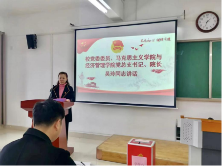 马克思主义学院与经济管理与建筑工程学院党总支书记、院长吴玲代表学院党总支向大会的胜利召开表示热烈的祝贺,同时对广大青年学子提出几点期望:一是要坚定理想信念,坚持勤学苦练;二是加强价值养成,锤炼意志品质;三是培养科学思维,勇于创新创造;四是强化责任担当,投身社会实践;五是完善组织建设,引领学团发展。最后,党总支书记吴玲勉励学子:要坚定不移听党话、跟党走,要敢于有梦、勇于追梦、勤于圆梦;要不负韶华、不负时代、不负人民;要牢记强国兴国报国的使命担当,让青春在不懈奋斗中绽放绚丽之花!