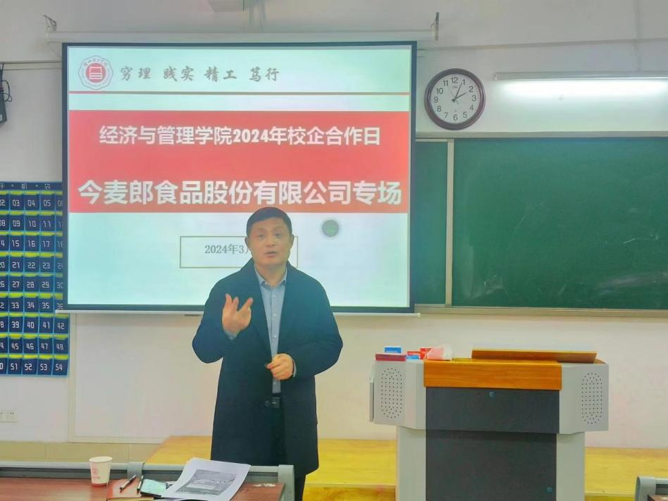 秦品德对今麦郎食品股份有限公司一行来访表示欢迎,并对该公司“农业产业化国家重点龙头企业”和“全国农村一二三产业融合领军企业”的行业地位表示祝贺,并叮嘱同学们抓住“金三银四”的就业黄金期,要认真准备简历、敢于向企业展示自身优势,珍惜每一次就业宣讲会的机会。