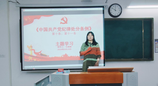 为深入学习贯彻习近平总书记关于党纪学习教育的重要讲话指示精神,学习领会新修订的《中国共产党纪律处分条例》和《中国共产党廉洁自律条例》及《中国共产党问责条例》,增强党员的纪律意识,强化正风肃纪。2024年5月15日,永利集团304am登录经济学管理学学生党支部于一教219进行专题学习。会议由管理学党支部书记石园园领学,经济学、管理学学生党支部正式党员和预备党员以及经济学、管理学外出实习党员线上全员参加。