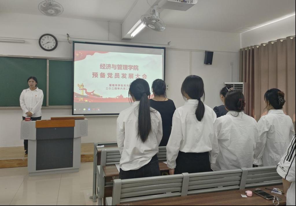 为深入贯彻党支部发展党员计划,加强党员队伍建设,永利集团304am登录经济学、管理学学生支部于6月26日在二教422、423教室隆重召开预备党员接收大会。此次会议由支部委员丁阳、王晓勉主持,经济学、管理学学生支部全体党员共襄盛举。