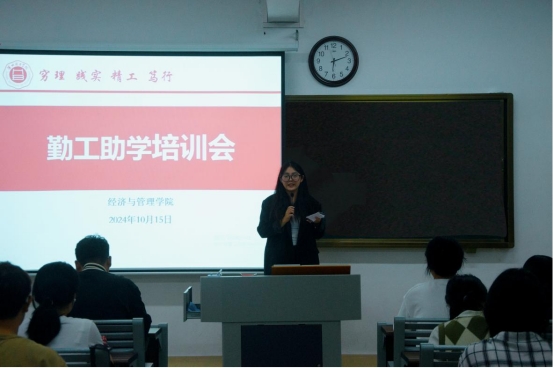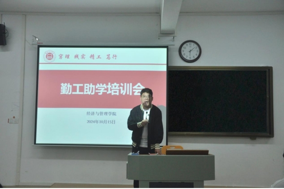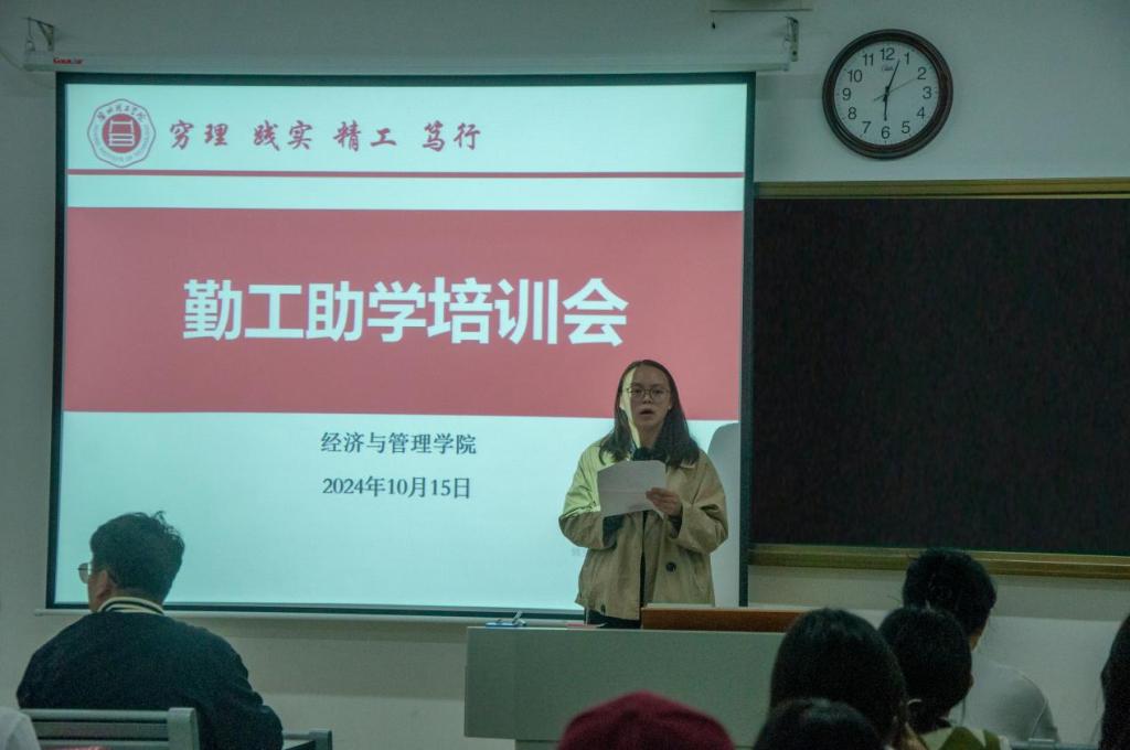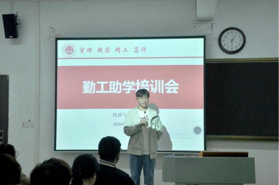 最后,叶赵强对学院的勤工助学政策及各岗位的工作职责进行了全面而详尽的阐述。他进一步明确了勤工工时的核算方法及工资发放的具体流程和细则,确保信息的透明度与准确性。在介绍过程中,叶赵强还针对以往勤工助学工作中存在的问题进行了说明,并针对性地提出了具体的改进措施,旨在提升勤工助学工作的效率与质量。他强调,希望所有参与勤工助学的同学能够秉持认真负责的态度,全力以赴地完成工作任务。