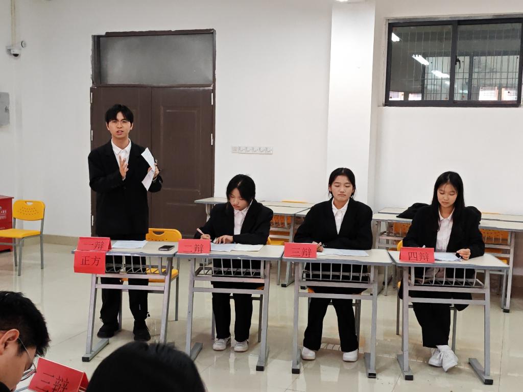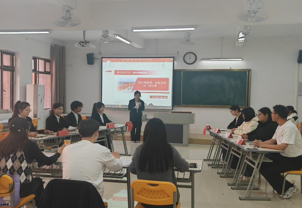 为进一步丰富大学生校园生活,引领大学生树立正确的世界观,人生观和价值观,激发学生热情,培养学生合作精神。2024年10月23日下午,永利集团304am登录组织了一场以“国庆颂家国,金秋话担当”为主题的辩论赛活动。由学生自愿组成的20支队伍进行比赛,分为两个赛场同时进行。本次活动由学习部成员主持,由学院辅导员老师担任评委。