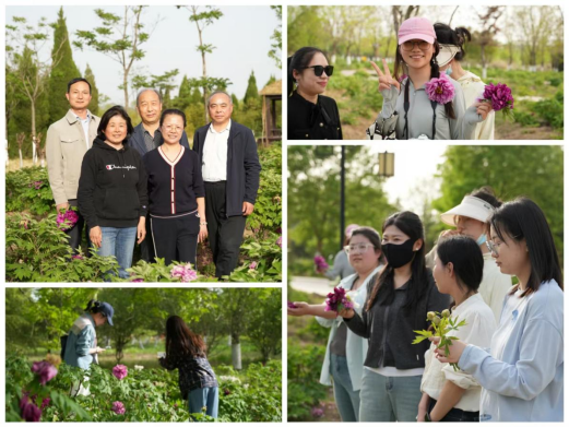 活动首站,老师们漫步于南湖公园的牡丹园。正值花期,园内牡丹竞相绽放,涵盖“姚黄”“魏紫”“赵粉”等名贵品种,雍容华贵、姹紫嫣红,宛如一幅流动的国画。老师们纷纷驻足拍照,品味牡丹文化,置身花海,仿佛穿越千年,感受到‘唯有牡丹真国色’的诗意!
