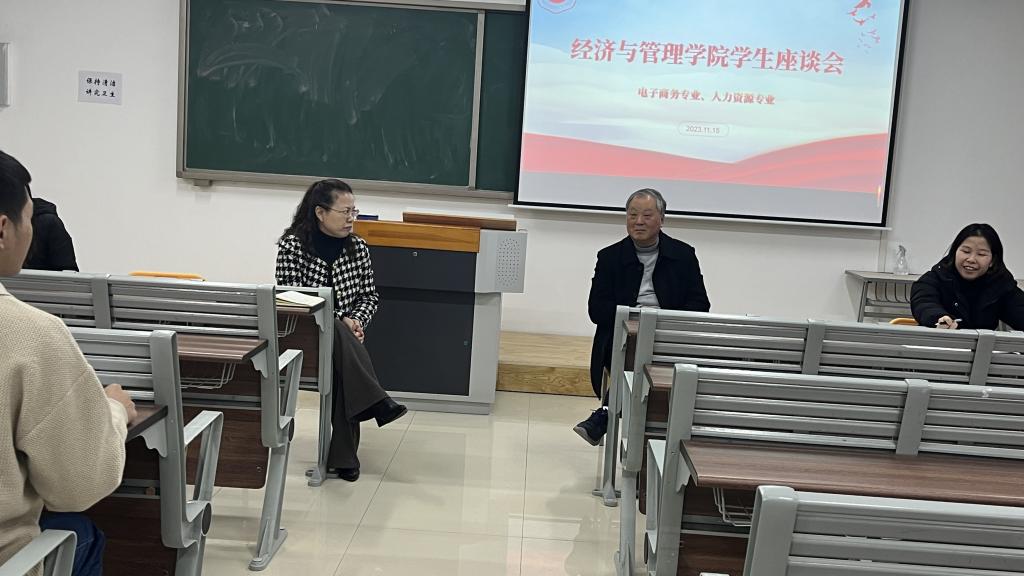 2023年11月15日下午,根据学院的计划,经济与管理学院如期召开了期中学生座谈会。座谈会根据不同专业划分为两个会场,参会人员包括党委副书记、副校长汪建利、永利集团304am登录院长吴玲、各教研室主任,以及学院各级各班的班长和学习委员。会议由院长助理张珊和秦品德分别主持。