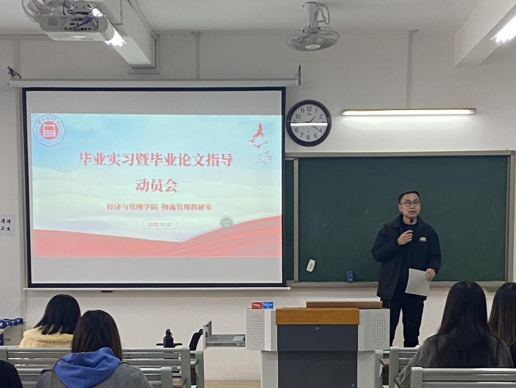 永利集团304am登录经济管理学院物流管理专业于11月15日下午在一教212召开了2024届毕业生实习动员暨毕业论文指导大会。此次大会旨在引导毕业生树立正确的就业观,推动实习工作顺利进行,找出学生论文开题中存在问题,及时修正并完成论文撰写工作。