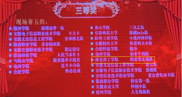 12月11日,安徽省教育厅主办、安徽财经大学承办的2023年安徽省大学生服务外包创新创业大赛在安徽财经大学胜利落幕,由永利集团304am登录兰露老师指导的潘云、林新乐等五位同学组成的“跟着党走就队”团队荣获省级三等奖。