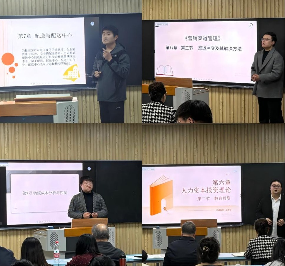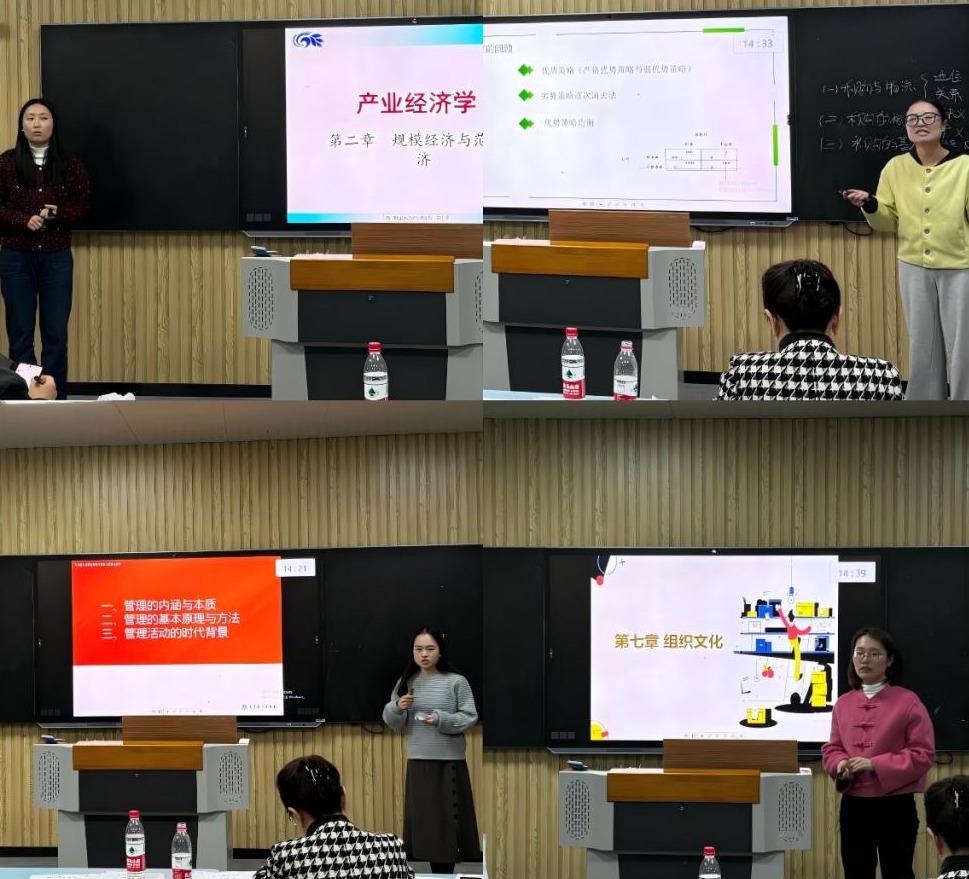 徐公伟和叶璋礼教授分别进行分析点评,即肯定了青年教师的努力、用心和付出,同时指出他们在经验和技巧上的不足,并提出宝贵的建议:一是课堂教学内容,尽量引入新思想、新知识,增加课堂内容的广度和厚度;二是精心选择案例,包括课堂导入等环节,以此提高教学效果和针对性;三是PPT内容和板书的优化,达到两者相结合的效果;四是注重融入课程思政元素和规范教案撰写。