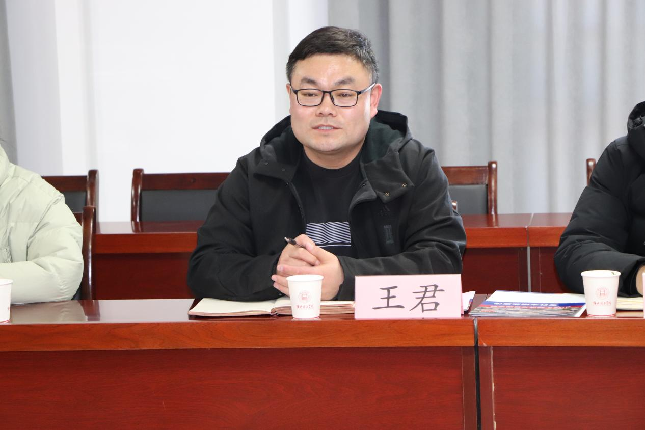 吴玲对王君一行的到来表示了热烈的欢迎,并简洁要介绍了学院在人才培养、专业建设以及产学研合作方面取得的最新成果。她特别强调,校地共同打造“一村一主播”项目是推动乡村振兴、服务地方经济的一项重要举措。实施该项目可以充分利用学校直播和短视频运营的专业技能与实践经验,助力杜集区挖掘并打造具有地方特色的品牌,从而提高农产品和文化旅游资源的公众认知度。学校将严格按照项目制的方式,深度参与其中,竞选专业教师和学生组成项目团队,确保项目的高质量实施。
