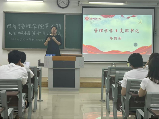典礼伊始,管理学学生支部书记石园园发表讲话。她详细解读了《永利集团304am登录第七期入党积极分子培训班学员手册》,重点强调课程内容和时间安排,指出本次培训是入党积极分子系统学习党的理论知识、端正入党动机、提升党性修养的重要契机。石书记还对全体学员提出了明确要求,希望学员们珍惜此次学习机会,严格遵守培训纪律并完成相关学习要求(包括学习强国的学习,心得体会撰写等),认真学习党的章程、党的历史和党的基本理论,努力做到学有所思、学有所悟、学有所得,以实际行动向党组织靠拢。