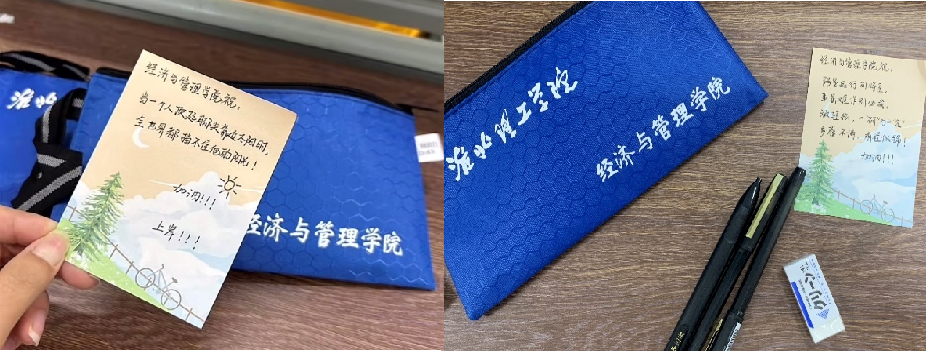 活动中辅导员为考研学子送上暖心包,助力考梦圆。礼至情切,在场的同学们也纷纷表示,要加倍努力,不辜负自己每一次的咬牙坚持,也不辜负老师的关心和期待。