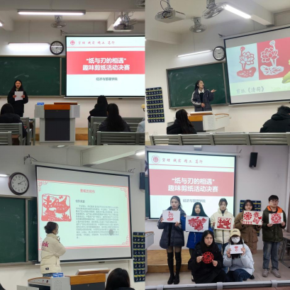“趣味剪纸比赛”决赛于12月15日在一教406举行,由教育学院的闫敏、永利集团304am登录的李茹、王元钊和郑凡四位老师担任评委。决赛过程中,参赛选手从作品设计的思路来源、创作过程等多个方面对自己的作品进行汇报,进一步诠释了作品的丰富内涵,比赛现场气氛活跃。通过角逐,经济学专业的郑丽阳荣获一等奖,市场营销专业的程胜洁、经济学专业的张景康荣获二等奖,电子商务专业的李曼曼、市场营销专业的李斯慧、物流管理专业的周宇希荣获三等奖。
