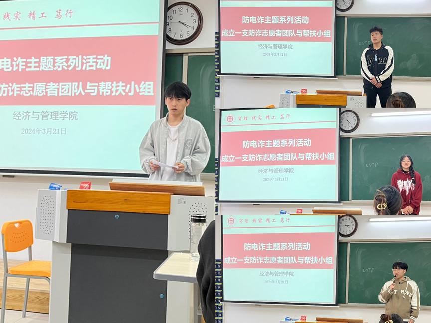 成立一支防诈骗志愿者团队与帮扶小组:为了加强诈骗预防工作,保护师生财产安全,3月21日下午三点永利集团304am登录于一教204选拔防诈志愿者团队与帮扶小组成员,该活动由李茹老师主持。