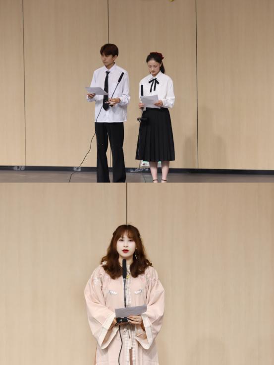 比赛现场,37个参赛队紧紧围绕“弘扬伟大建党精神”“传承五四精神”等主题,现场朗诵《吾有所爱其名华夏》《我爱你中国》《告少年》《中国红》《万疆》等诗文,各参赛队的朗诵与情景表演、传统文化展示等多种艺术形式相结合,用澎湃的情感讴歌祖国崛起的风雨历程,抒发对祖国的热爱,慷慨激昂的字句铿锵,真挚的表达博得现场观众掌声,点燃在场评委和观众内心深处的热情,更激发大家对党和祖国的悠悠深情。经过层层筛选,最终选出22级市场营销对口2班的《青春使命强国有我》、23级经济学《青春中国》和22级物流管理对口3《少年强》进入校级朗诵比赛。