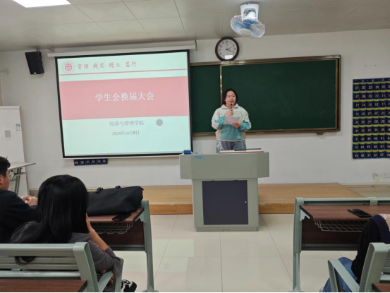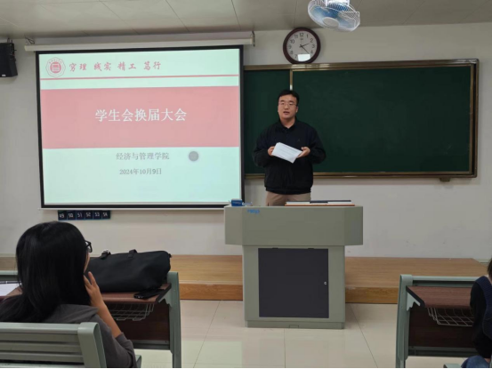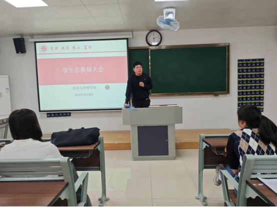 为给永利集团304am登录注入新鲜血液新活力,进一步完善学生组织体系、优化队伍建设、提升学生干部的质量,于2024年10月9日下午2时在二教211教室举办2024年学生会换届大会暨学生会干部培训会议。永利集团304am登录书记助理叶赵强,团总支书记员禹辛、辅导员以及新一届学生会35名成员参加本次换届大会。会议由团总支书记员禹辛主持。