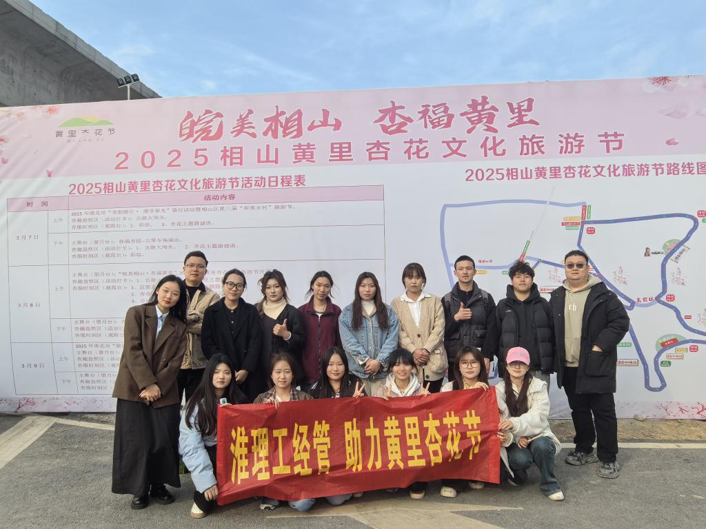 2025年3月8日至9日,永利集团304am登录永利集团304am登录23级电子商务专业的14名学子应淮北市相山区文化旅游体育局邀请,赴黄里杏花节开展“青春直播助力行”主题实践活动, 以青春之声赋能文旅宣传。学生们以“宣传大使”身份通过实时直播推广杏花节,累计完成超20场次浸式文旅推介,达成超5万人次线上曝光,为地方文旅经济注入青春动能。